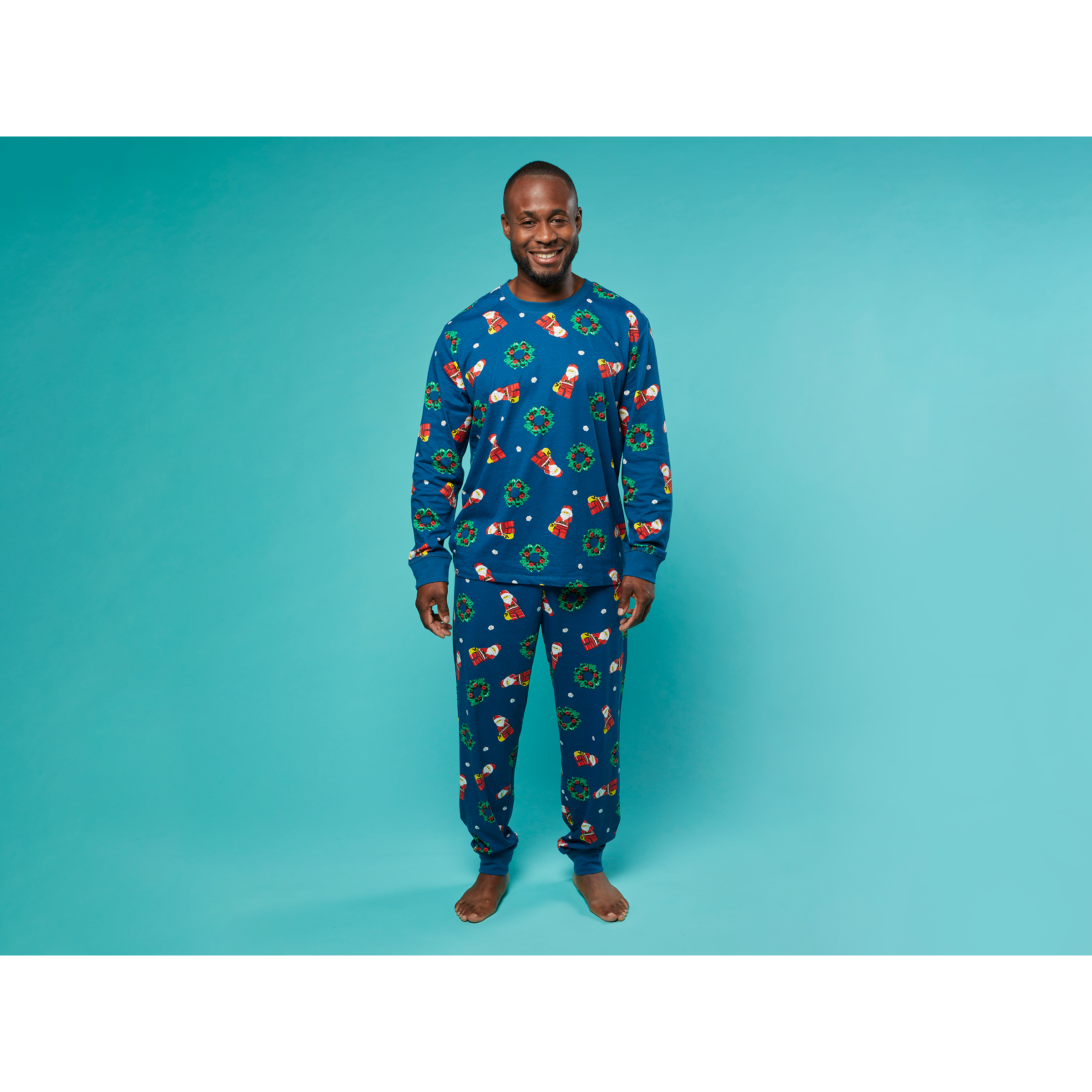 Add some festive fun to the holiday season with these unisex LEGO Adult Pyjamas – Navy. This 2-piece set in soft cotton is illustrated with LEGO Santa and Christmas wreaths, so grown-ups can enjoy relaxing evenings and cozy bedtimes in seasonal style. The pants have a comfortable elasticated waistband, and the ankle and sleeve cuffs are ribbed so they stay put at night. This machine-washable nightwear set makes an ideal Christmas gift for men and women who are big kids at heart!”,”featuresText”:”Add some festive fun to the holiday season with these unisex LEGO Adult Pyjamas – Navy. This 2-piece set in soft cotton is illustrated with LEGO Santa and Christmas wreaths, so grown-ups can enjoy relaxing evenings and cozy bedtimes in seasonal style. The pants have a comfortable elasticated waistband, and the ankle and sleeve cuffs are ribbed so they stay put at night. This machine-washable nightwear set makes an ideal Christmas gift for men and women who are big kids at heart!