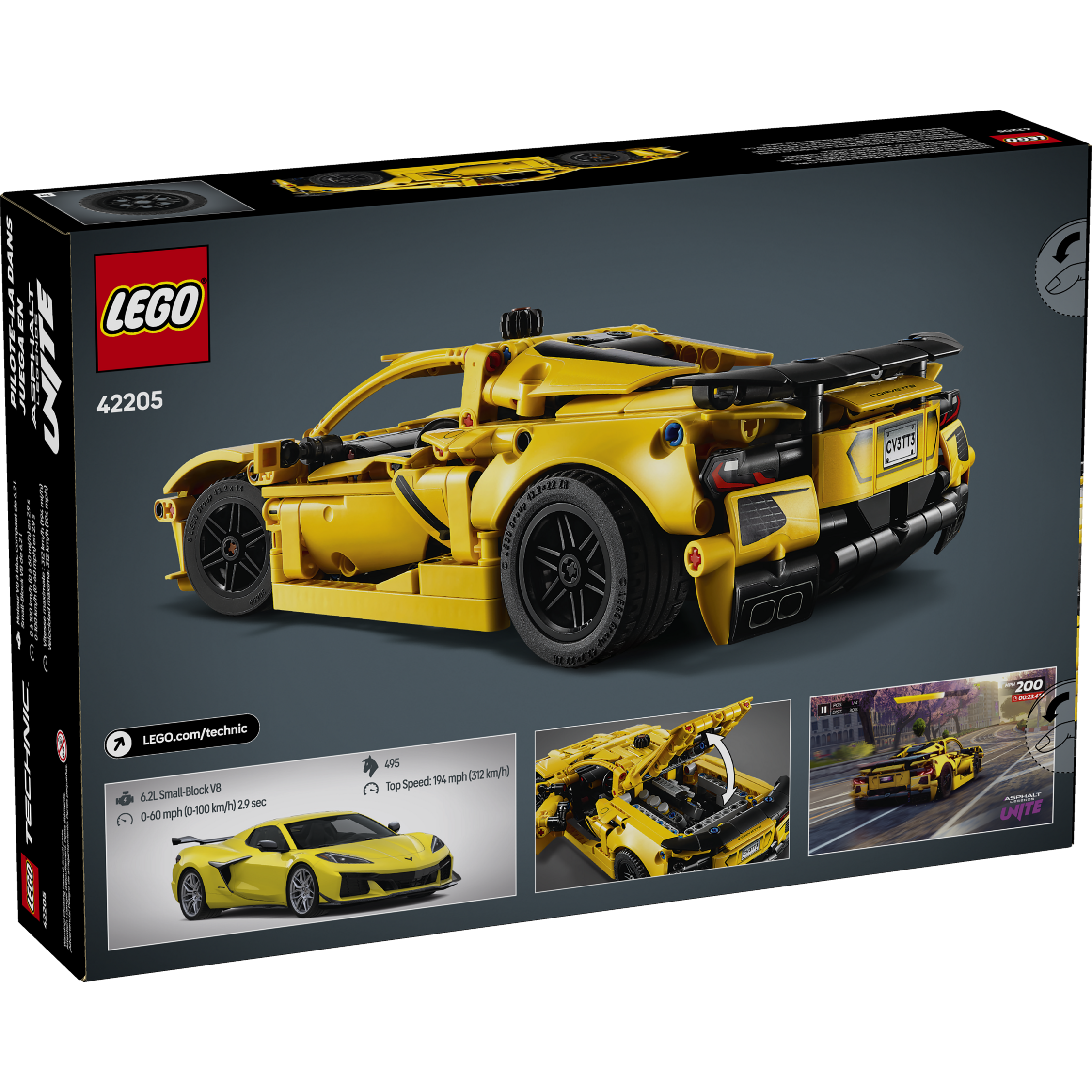 This detailed car model kit lets kids aged 9 and up build their own LEGO Technic Chevrolet Corvette Stingray (42205). Boys, girls and fans of exciting car toys can have fun assembling the realistic details before exploring the authentic features. Check out the awesome color scheme and moving 8-cylinder engine and differential. Use the knob to steer the car then open the doors and hood to admire the interior.