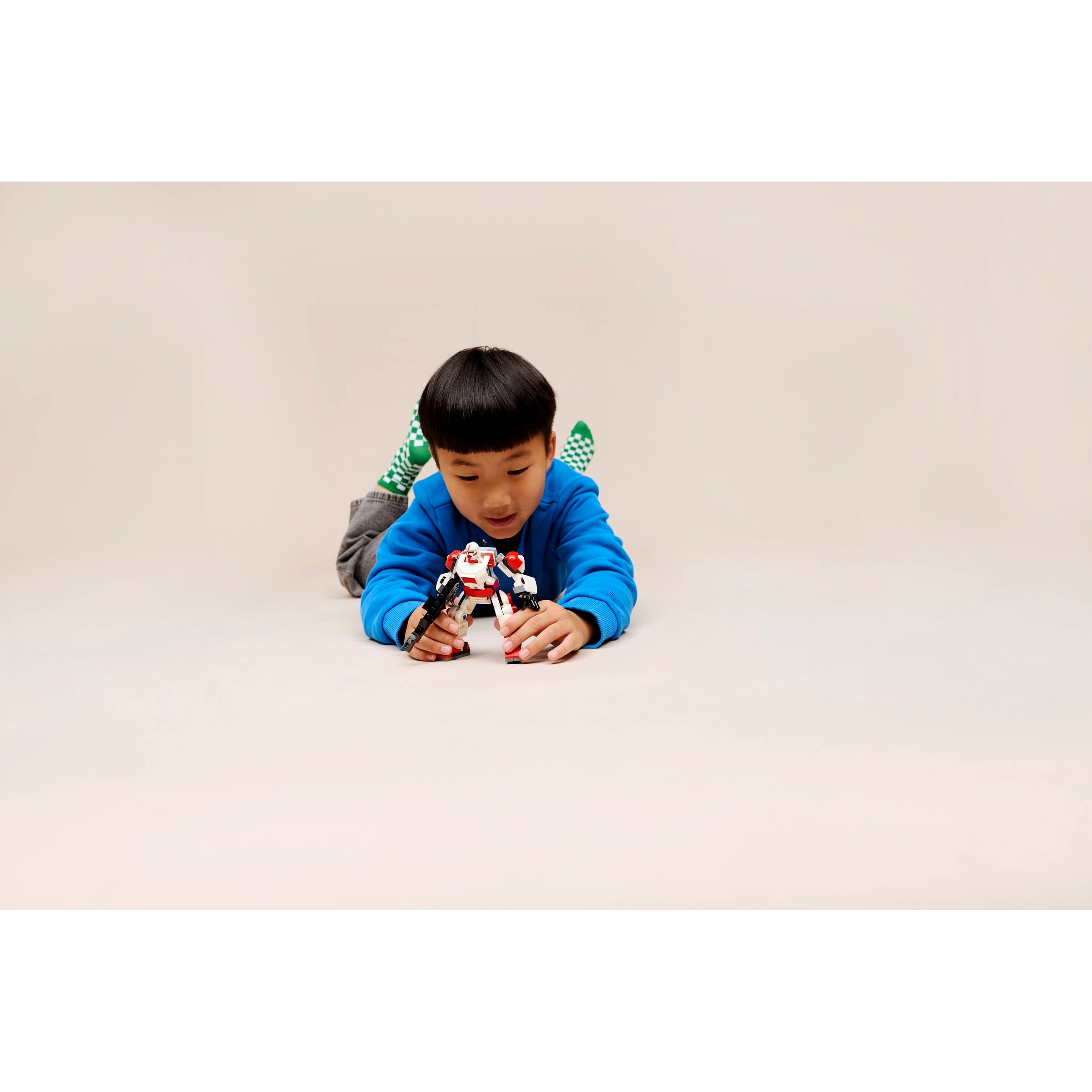 PLAY AND DISPLAY – Pose the mech’s hands, arms, legs and feet, target enemies with its large, stud-shooting blaster rifle, and display the mech between playtime adventures