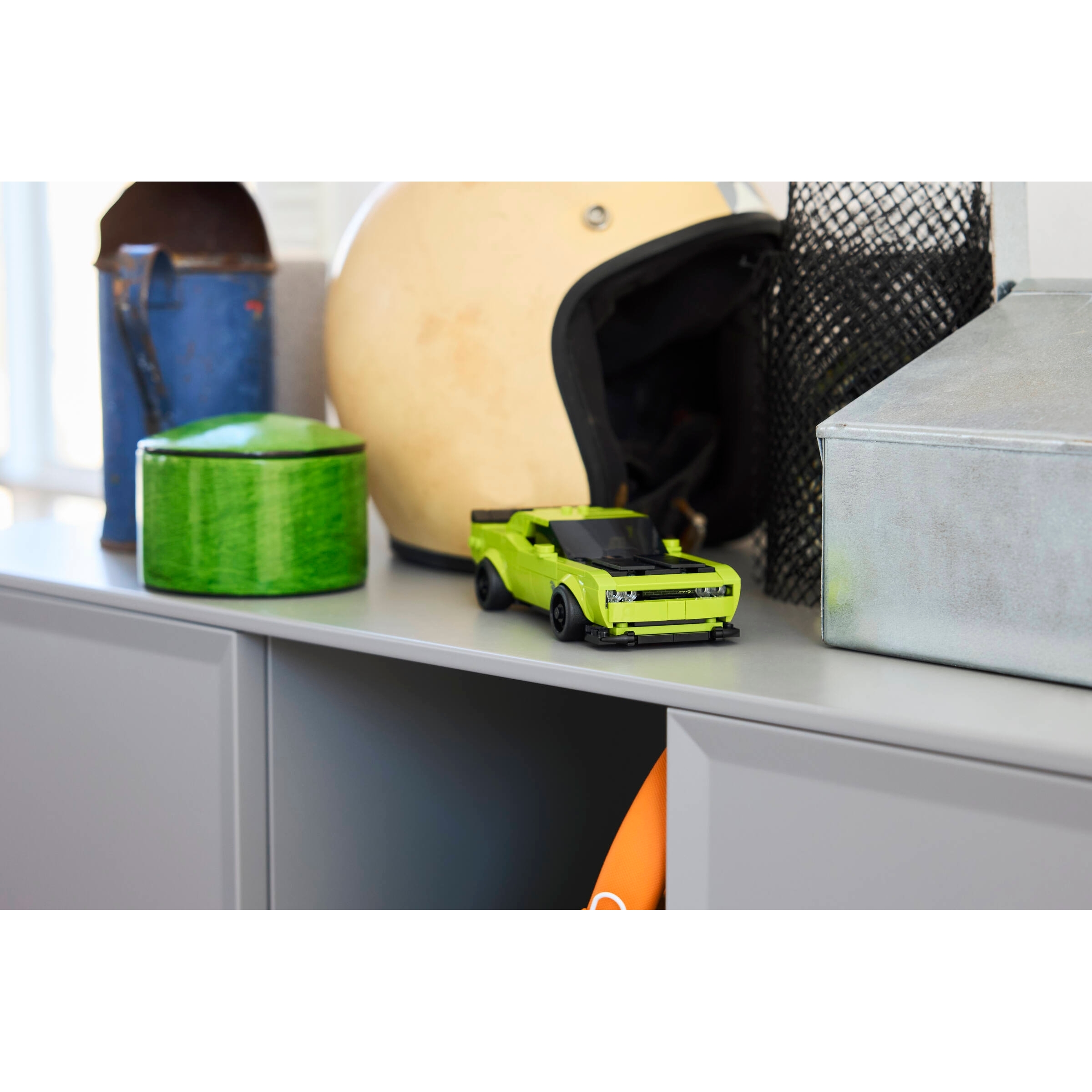 Dodge Hellcat display model – After kids have enjoyed playing out racing stories with the brick-built replica car, they can display it on a shelf or desk