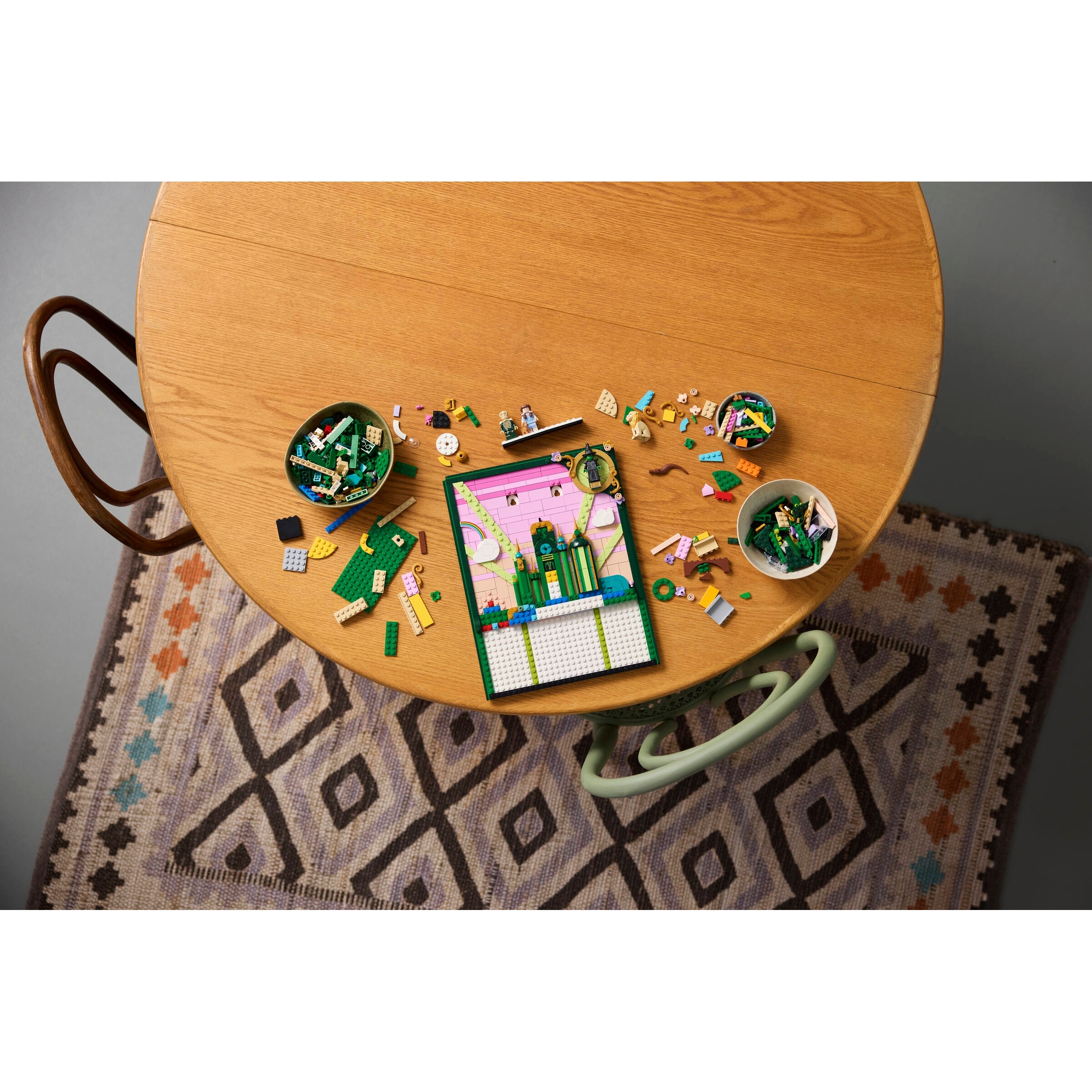 Interactive build-and-display piece – Create a beautiful LEGO art landscape that combines Emerald City, Shiz University, the Emerald City train and the Wizard’s hot-air balloon