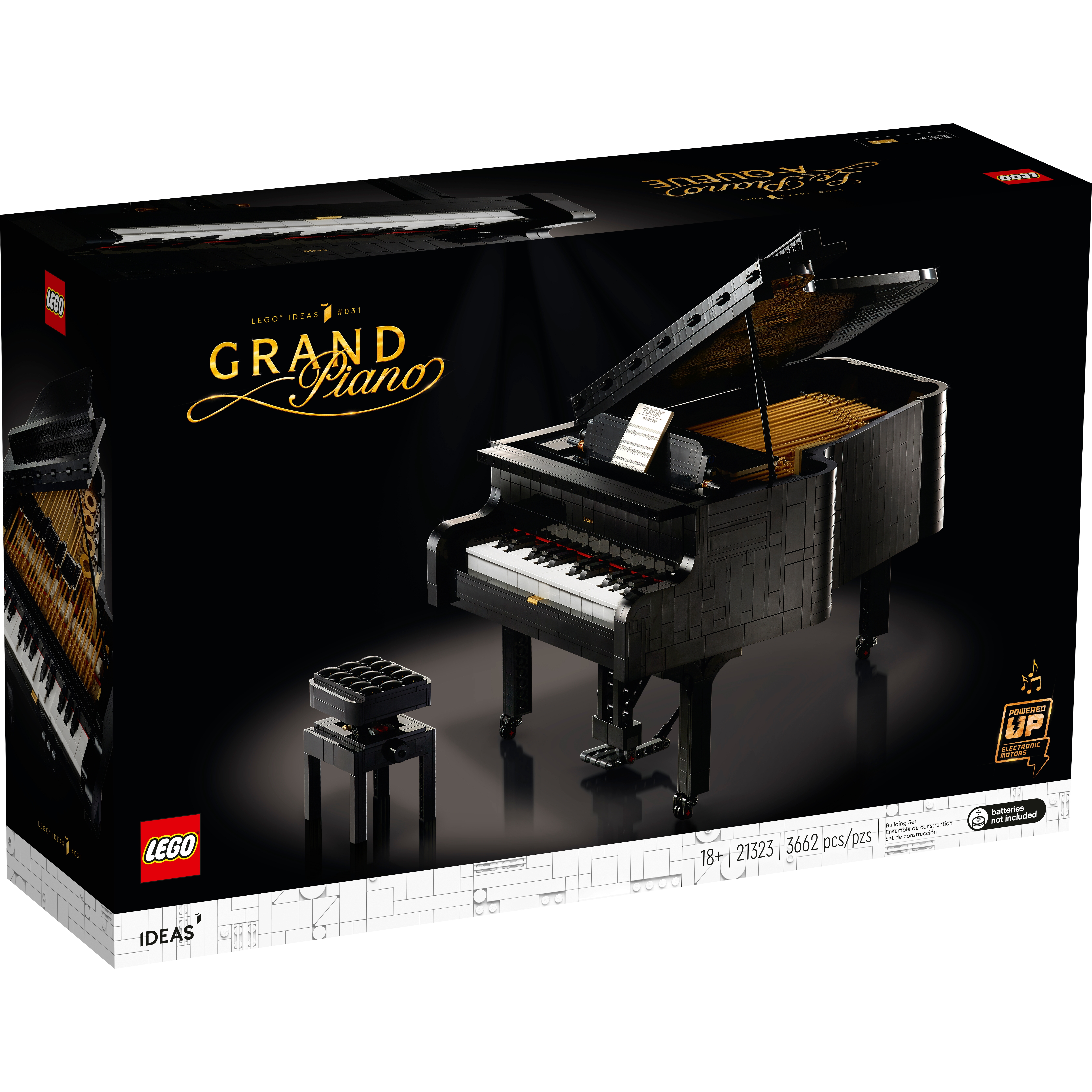 The LEGO Ideas Grand Piano (21323) has a removable 25-key keyboard, authentic hammer action, moving dampers and pedal, and motor. Combined with the LEGO Powered Up app, you can play a tune yourself or automatically.