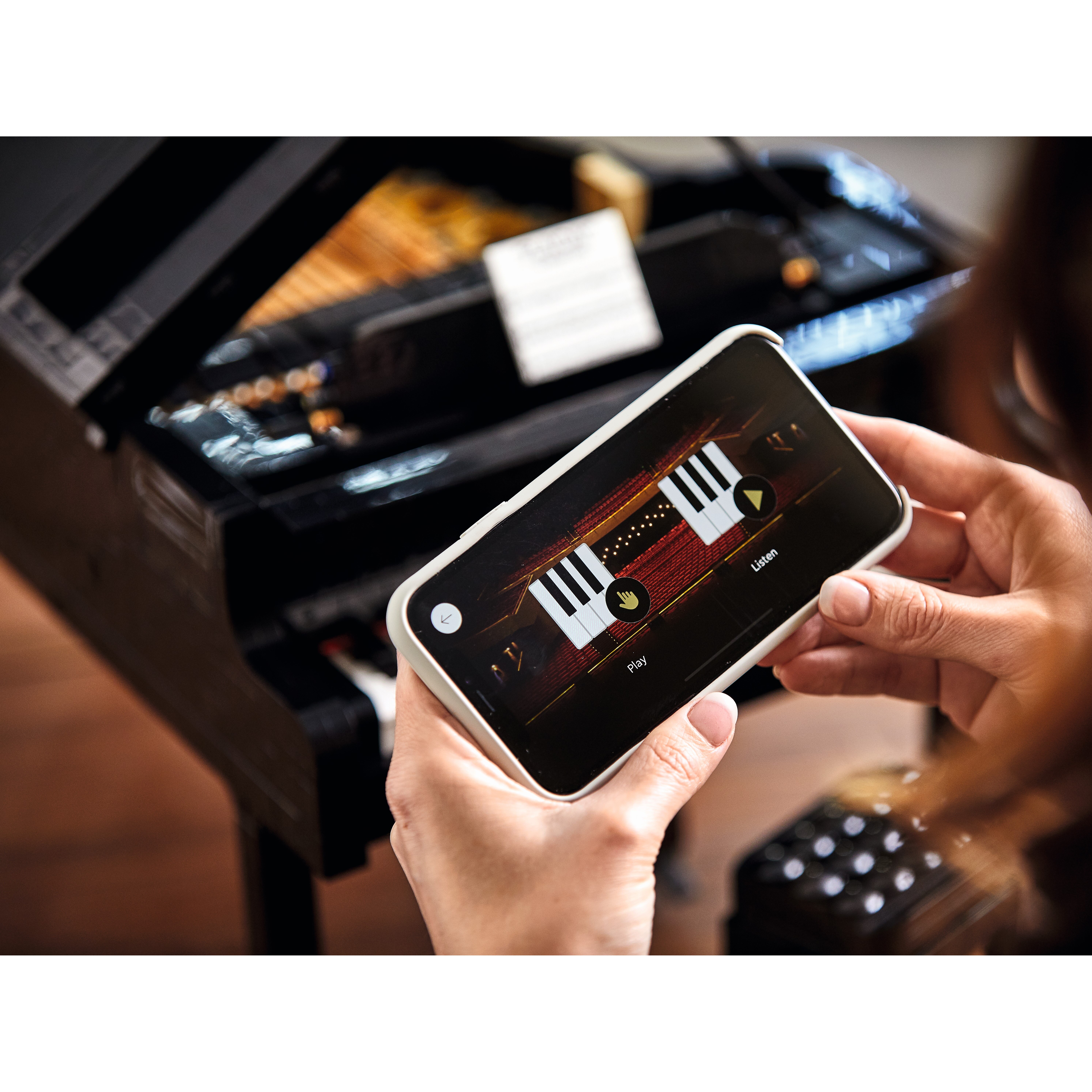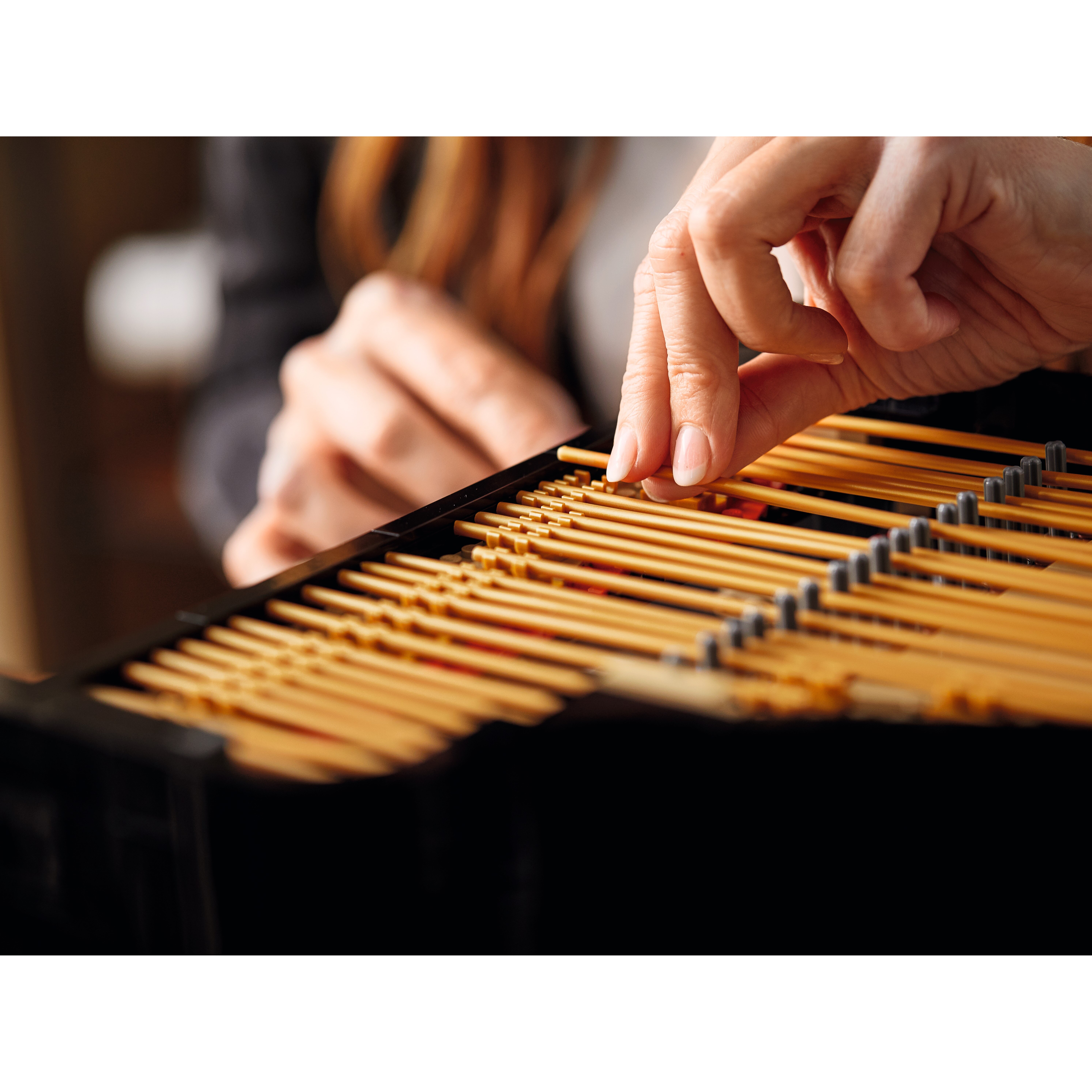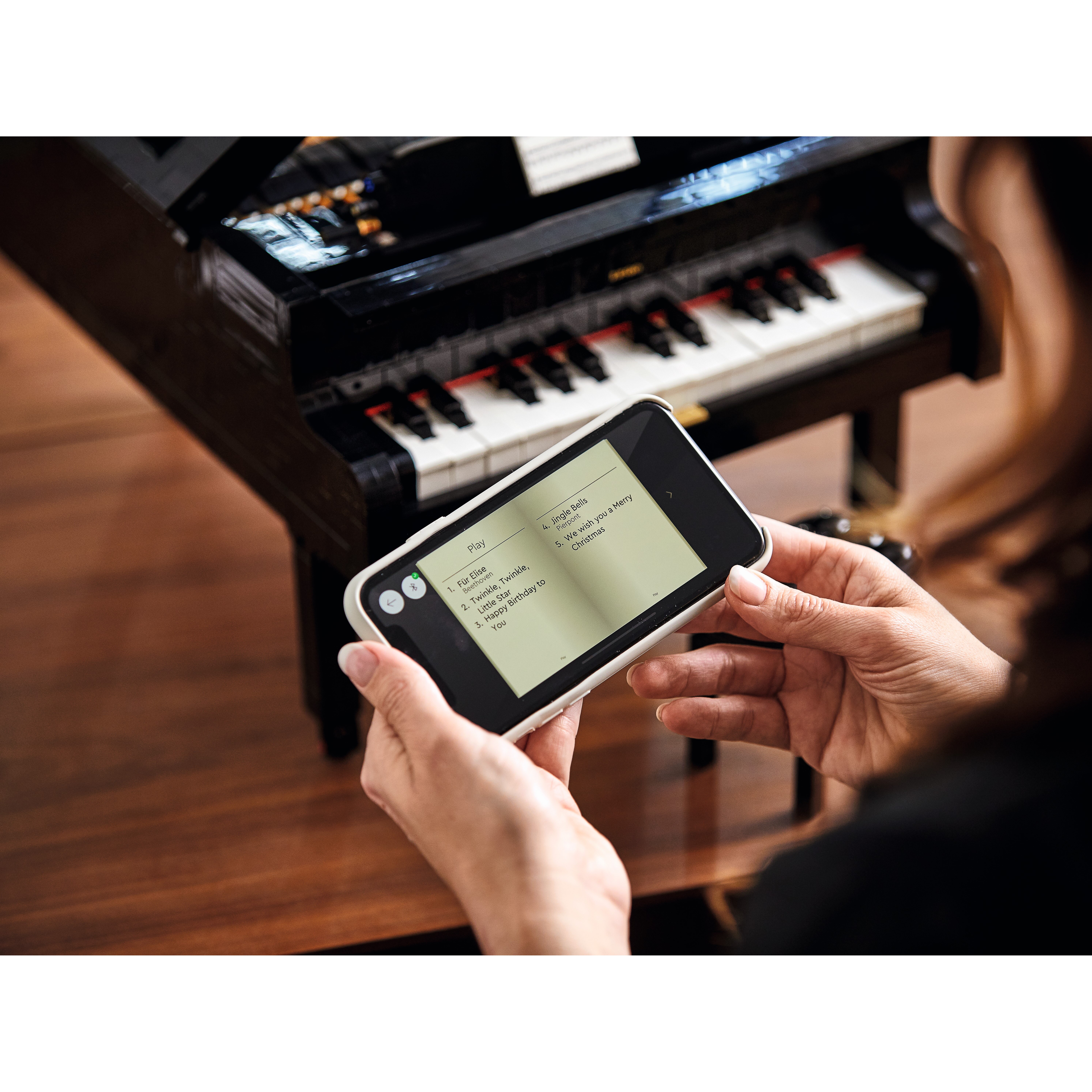 Feel the pride of building a sophisticated, brick-built version of a concert grand piano that you can actually play music with! Recreate the hammer action of each piano key, the moving pedal and authentic details such as the propped-open top lid and fallboard. Turn on the motor and then you are all set to play wonderful music – select user play on the free LEGO Powered Up app to play the notes yourself or activate auto play and just listen.