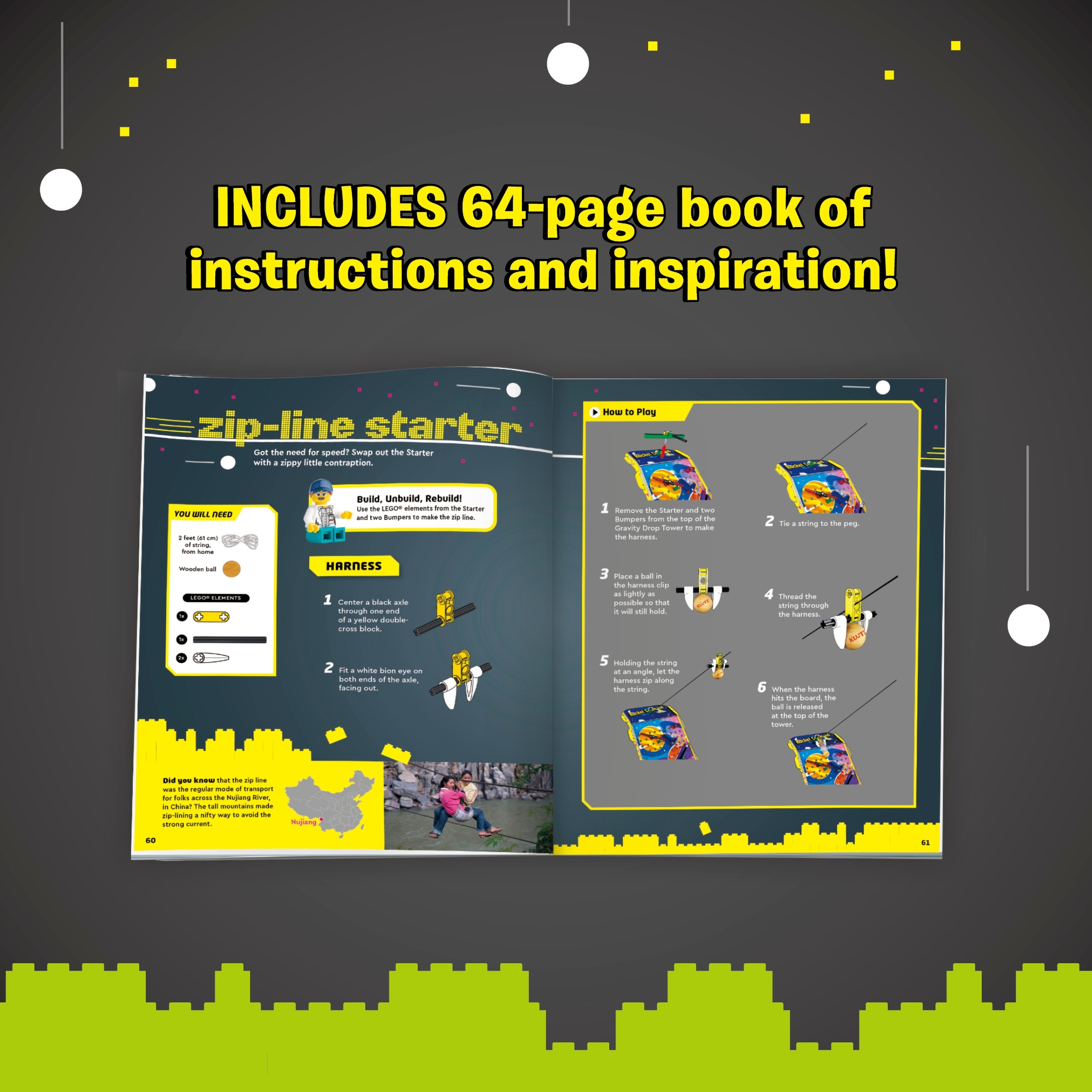 FUN SCIENCE TOY – LEGO Gravity Drop is a build-and-play STEM kit where kids build a tower of pinball-style obstacles then race balls down through their chosen layout of ramps, spinners and funnels