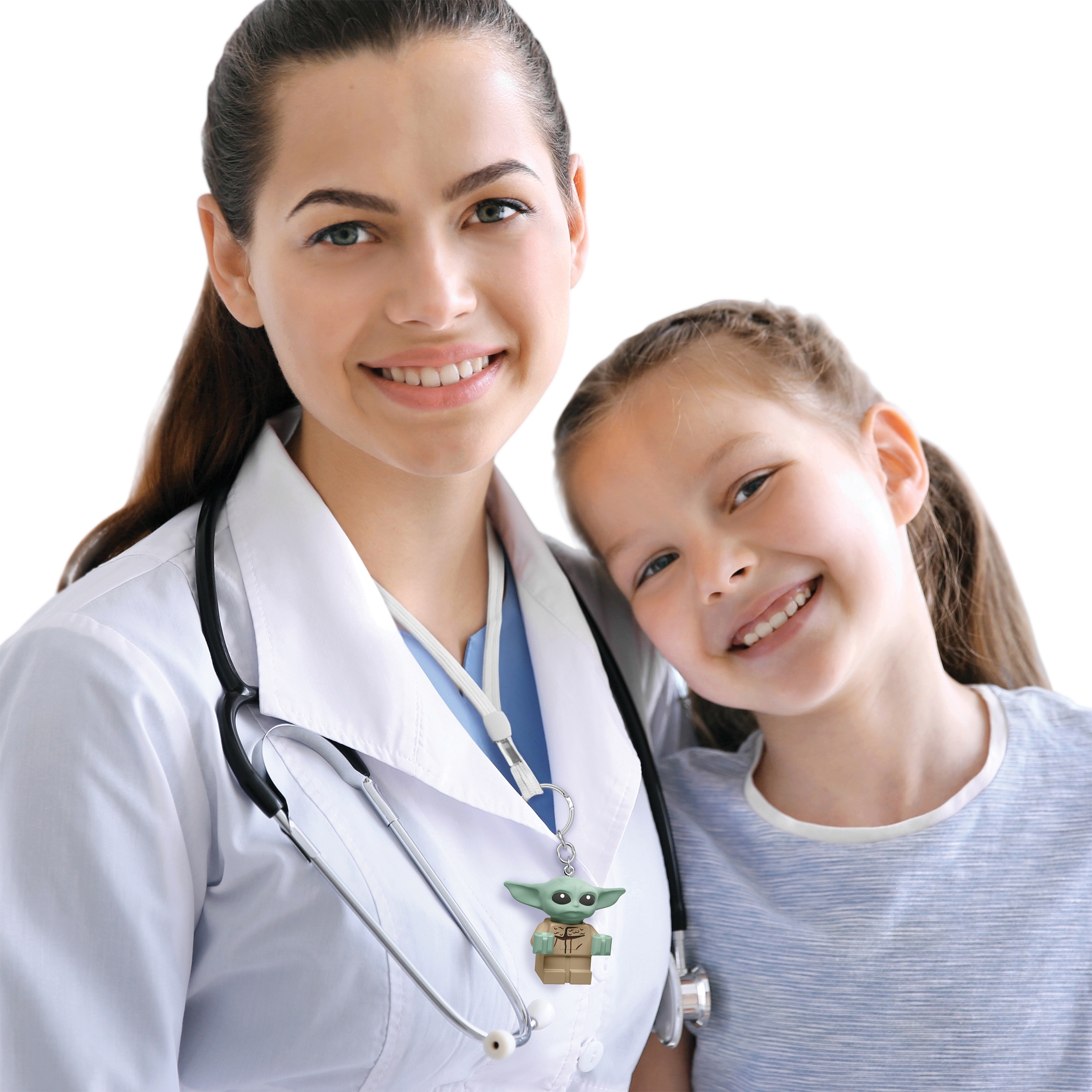 Grogu Key Light – A large version of the Grogu LEGO figure with posable arms, a bright LED light in the base, an on/off switch in the chest and a metal keyring to attach to a bag, backpack or keys