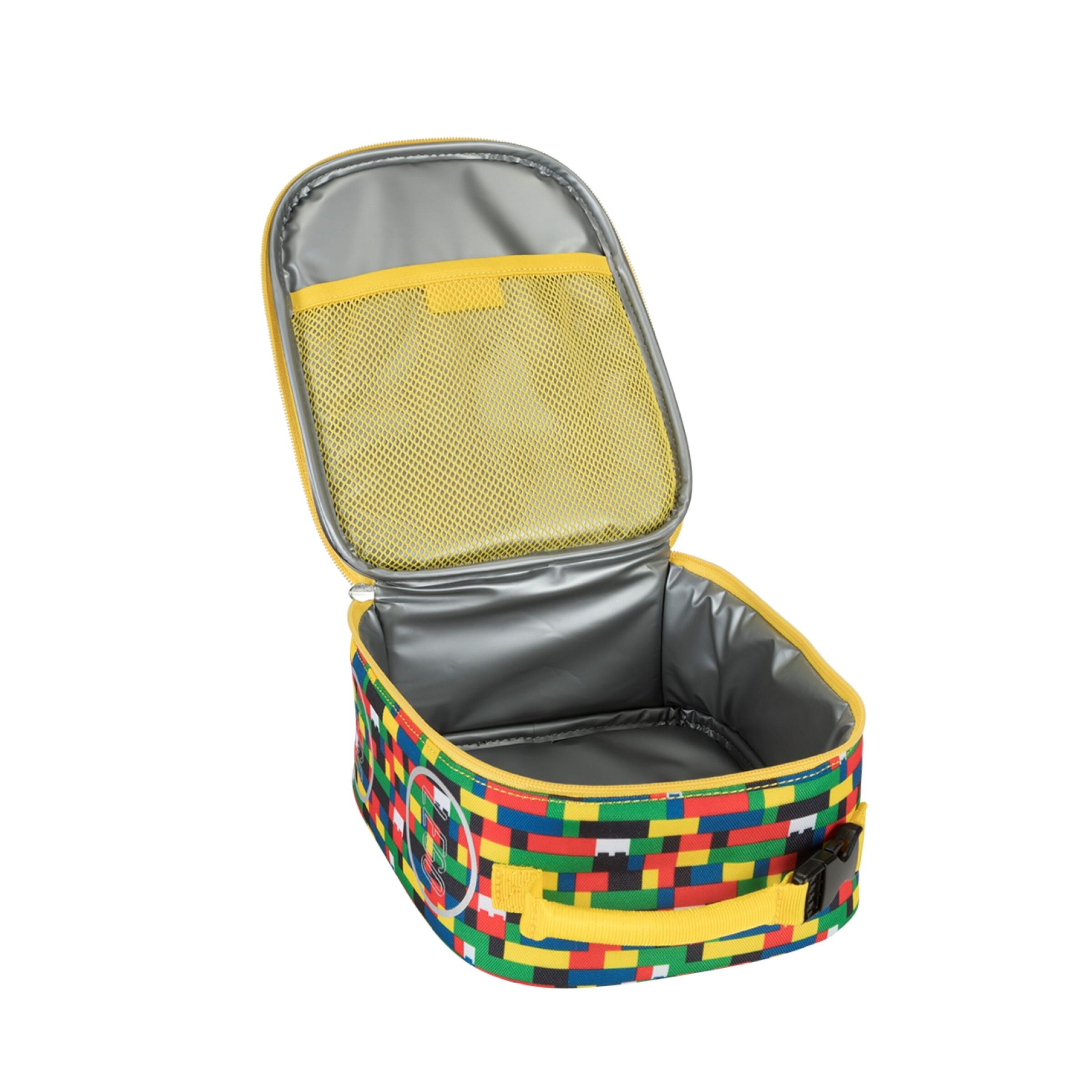 Carry midday fuel while looking cool with this LEGO Heritage Classic Lunch Bag. A fun and practical gift for kids and fans aged 3+, it features LEGO brick wall graphics and has a fully insulated, simple-to-clean compartment that keeps food and drink cool for hours. The interior mesh pocket is also a handy place to stow utensils, napkins, condiments or ice packs. This soft cooler bag has a padded handle with a buckle for easy attachment to the matching backpack (sold separately).”,”featuresText”:”Carry midday fuel while looking cool with this LEGO Heritage Classic Lunch Bag. A fun and practical gift for kids and fans aged 3+, it features LEGO brick wall graphics and has a fully insulated, simple-to-clean compartment that keeps food and drink cool for hours. The interior mesh pocket is also a handy place to stow utensils, napkins, condiments or ice packs. This soft cooler bag has a padded handle with a buckle for easy attachment to the matching backpack (sold separately).