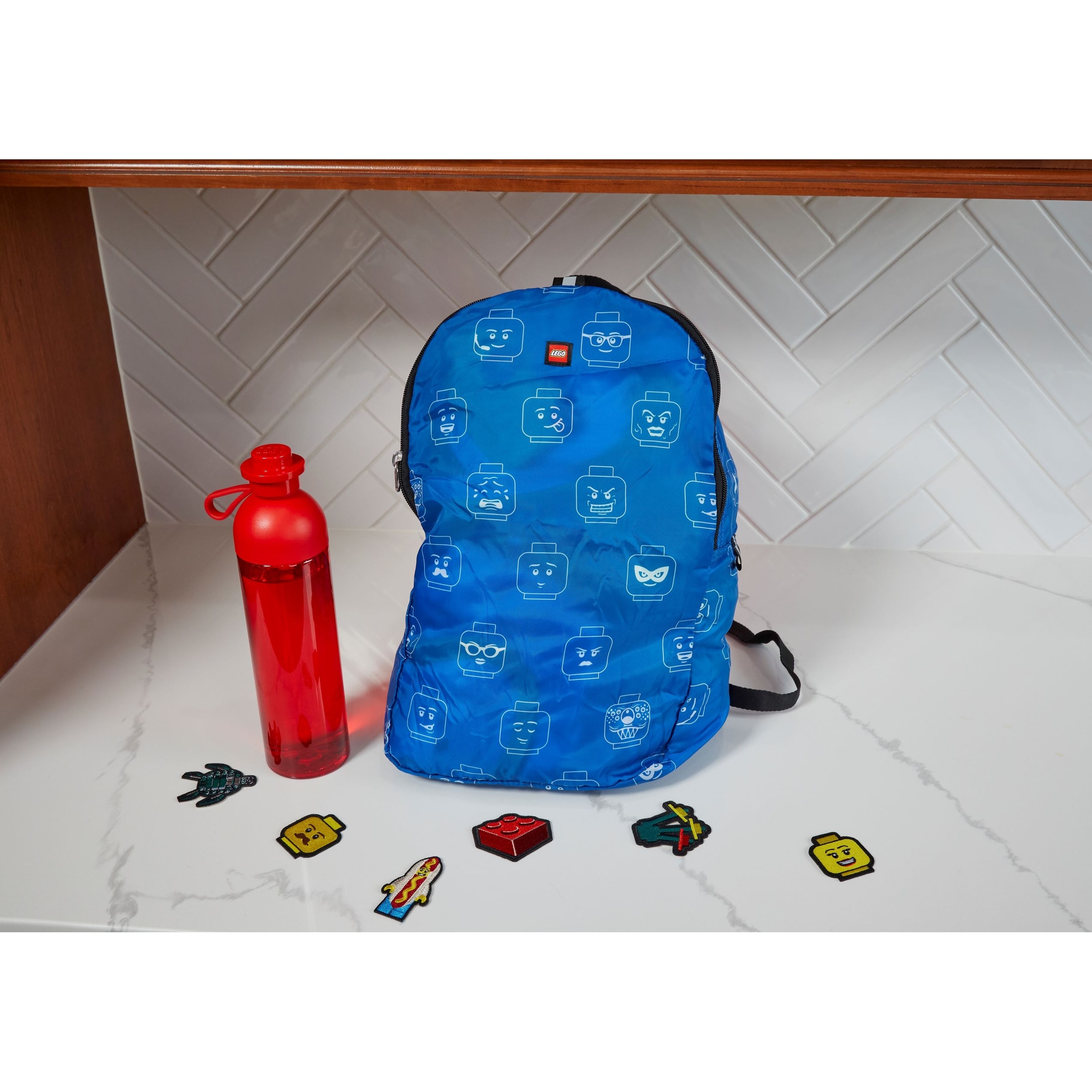 Hydration Bottle – This 500 mL plastic bottle comes with a LEGO brick-style screw cap and a removable silicone strap