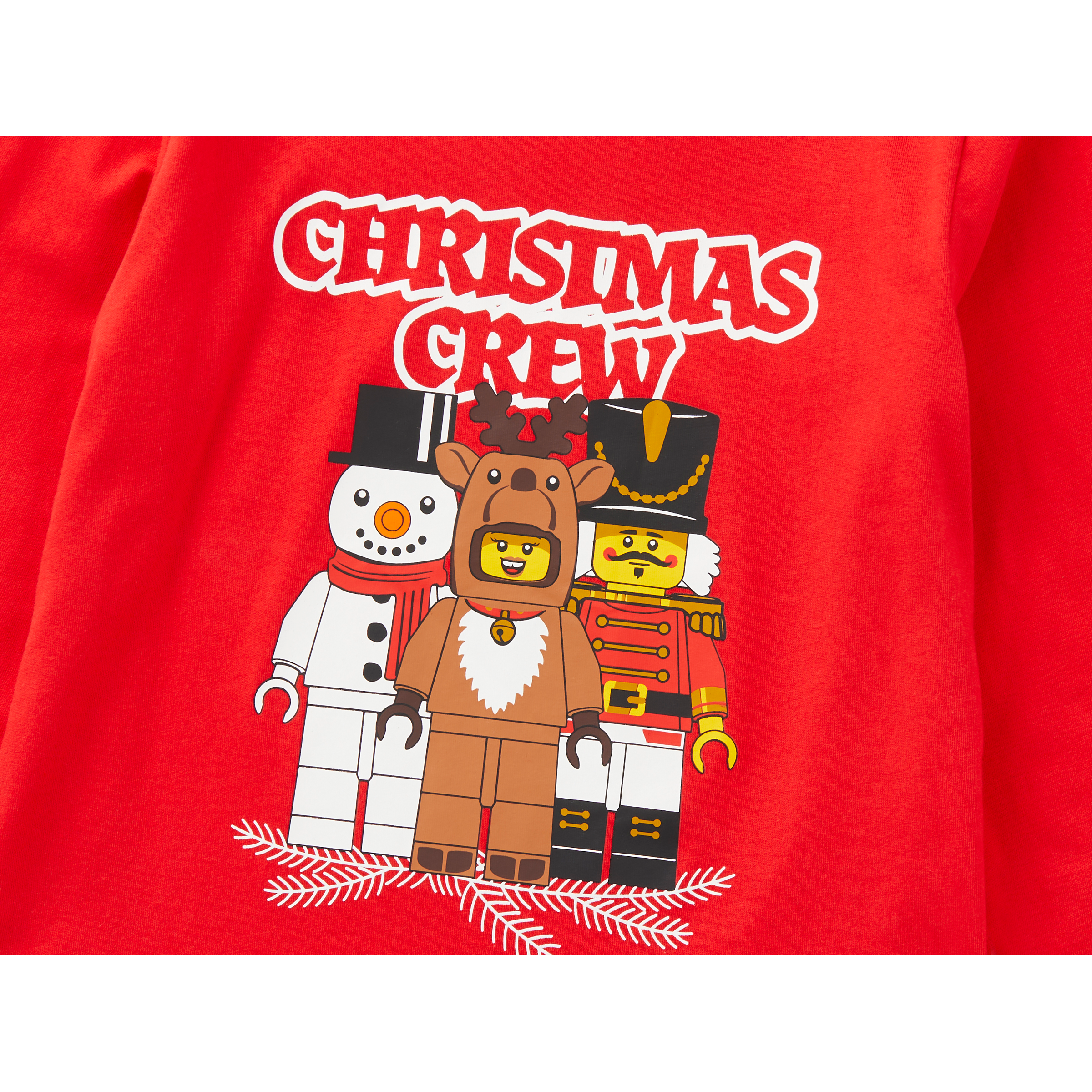Long-sleeve kids T-shirt – The front of the T-shirt features snowman, reindeer and nutcracker soldier LEGO minifigures and the words “Christmas Crew”