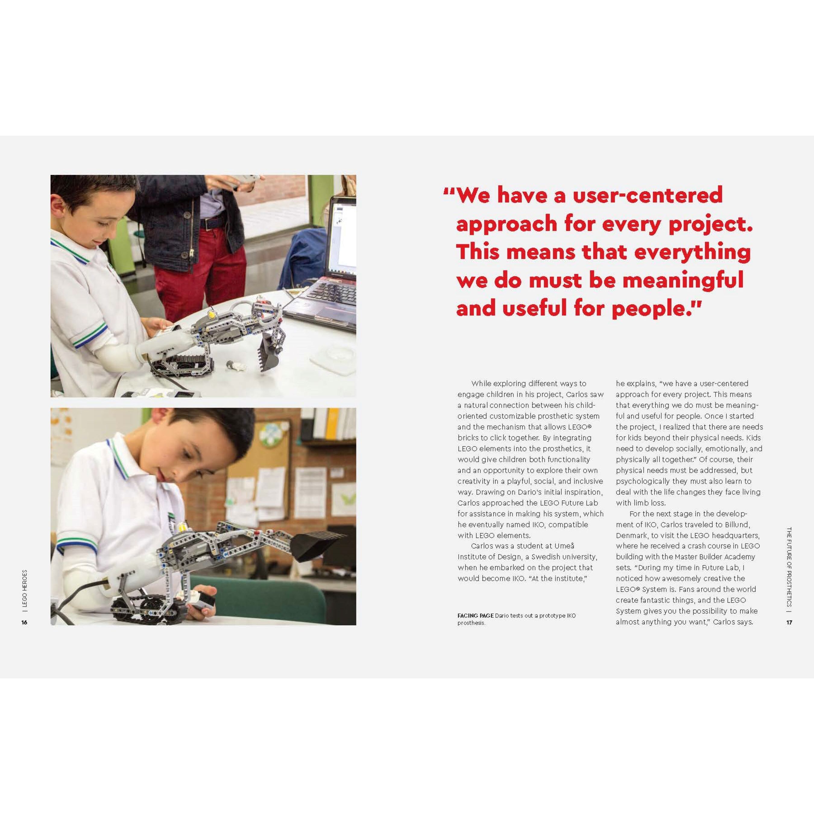 LEGO Heroes is an inspirational book telling the stories of 12 LEGO builders who turned their creative play into life-changing innovations. From a wheelchair for an injured turtle to customized prosthetic arms and coral reef research, these LEGO projects have made an impact in technology, sustainability and education. Over 112 pages, this hardcover book encourages LEGO fans of all ages to stretch their imaginations and develop their problem-solving skills to change the world 1 brick at a time. In English only.”,”featuresText”:”LEGO Heroes is an inspirational book telling the stories of 12 LEGO builders who turned their creative play into life-changing innovations. From a wheelchair for an injured turtle to customized prosthetic arms and coral reef research, these LEGO projects have made an impact in technology, sustainability and education. Over 112 pages, this hardcover book encourages LEGO fans of all ages to stretch their imaginations and develop their problem-solving skills to change the world 1 brick at a time. In English only.