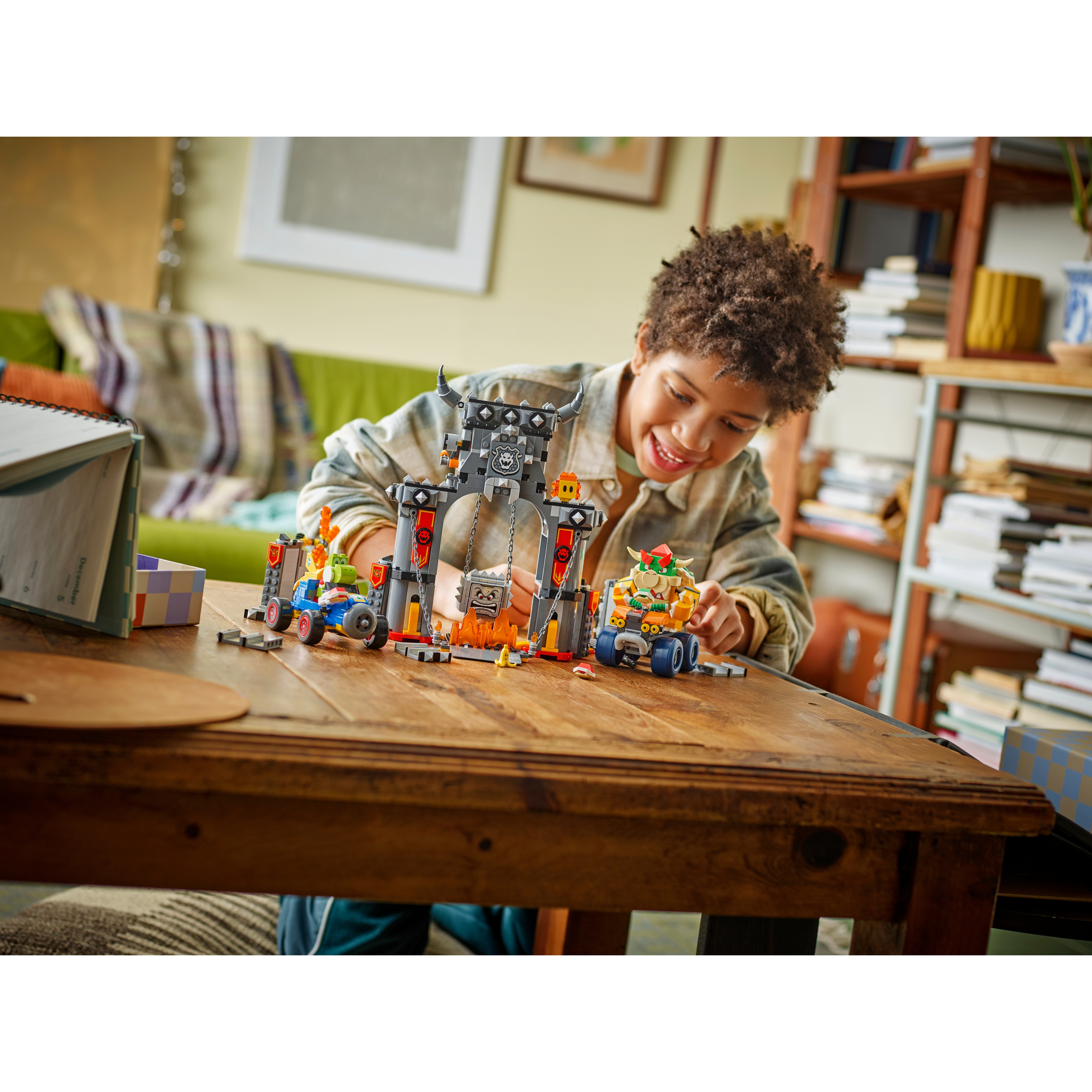 Explore the range of LEGO Super Mario: Mario Kart toy playsets (sold separately) for more vehicles and characters to expand the fun. This set contains 1,068 pieces.”,”featuresText”:”Get ready to race at Mario Kart – Bowser’s Castle with this LEGO Super Mario toy vehicle racing set for kids (72039). A brilliant Nintendo character gift toy for boys, girls and gamers aged 9 and up, the set features Bowser’s Castle, with space for Bowser to stand on top, foldout walls, a spinning Fire Bar and other fun functions. Drive, drift and launch shells with Bowser in the Standard ATV and Yoshi in the Mach 8 kart, smash through the castle walls, swerve away from the plunging Thwomp and topple the Lava Bubble.