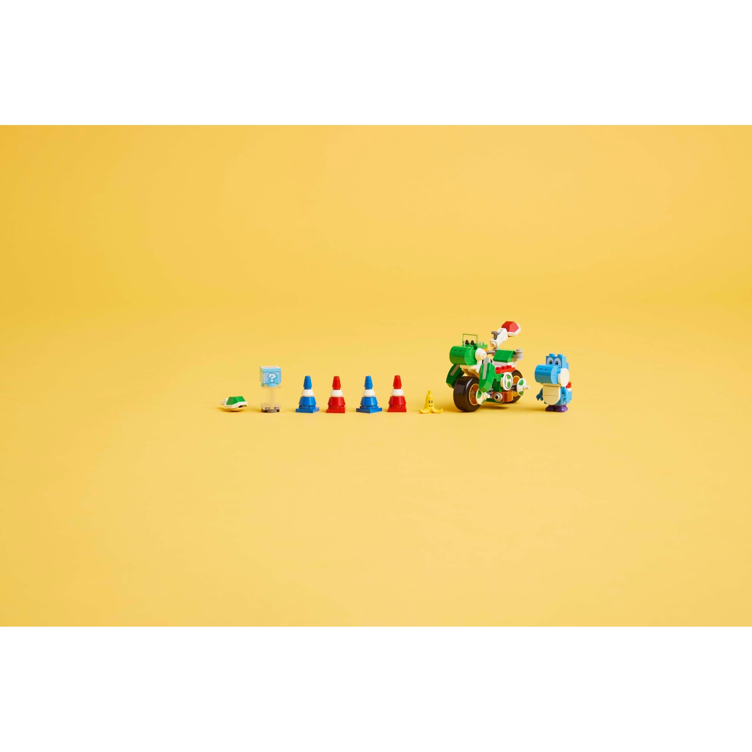 Interactive play – Ride the Yoshi Bike with LEGO Mario, LEGO Luigi or LEGO Peach (figures not included) to trigger Mario Kart sound/visual effects and get digital items from the Item Box