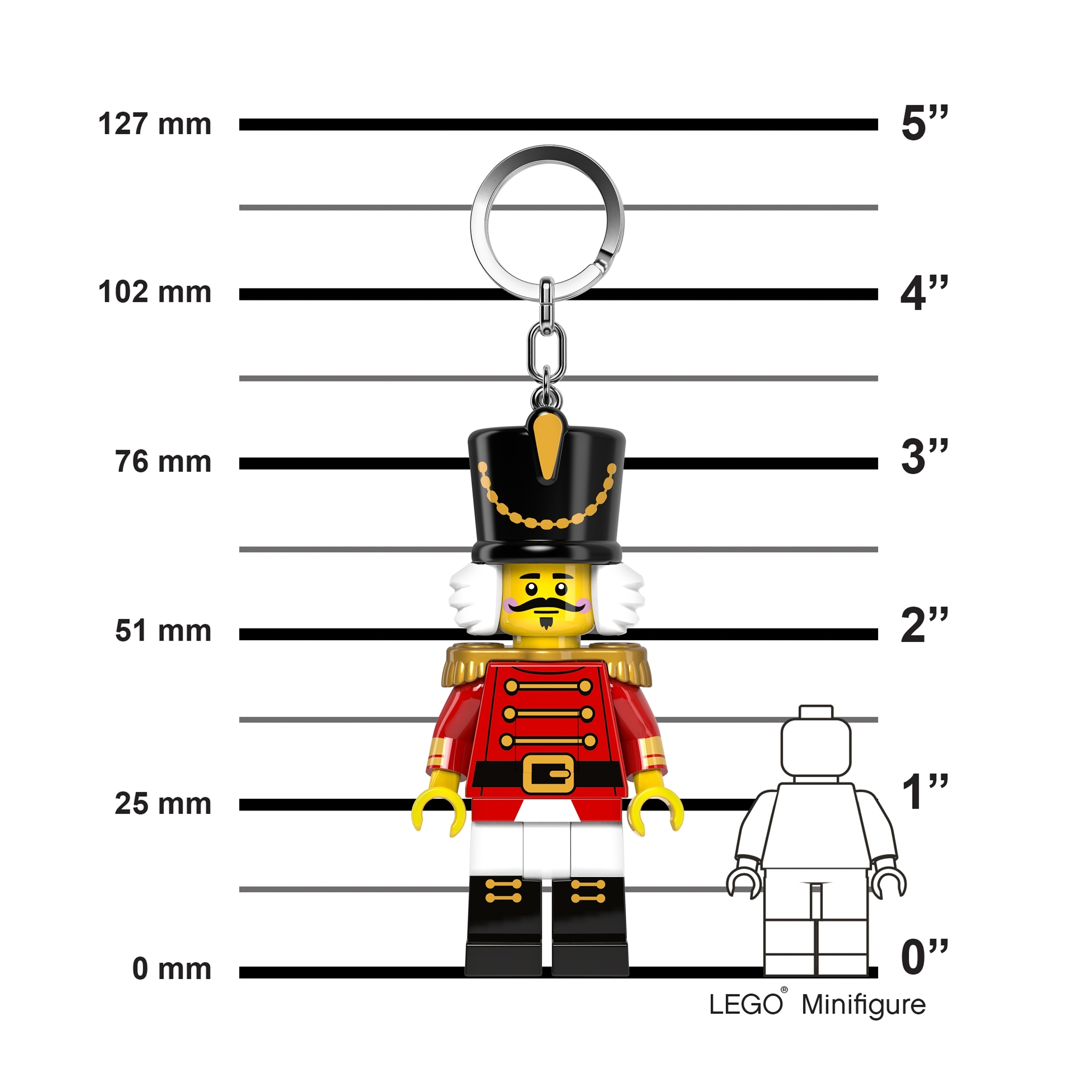 Fun accessory for LEGO fans – The minifigure of a nutcracker doll stands over 3.5 in. (8 cm) tall and is attached to a durable ring and chain