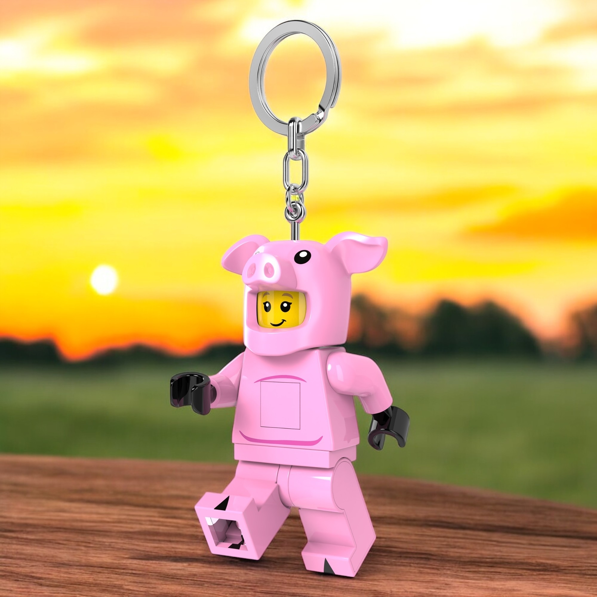 Give LEGO fans a present to make them squeal with delight: the Piggy Guy Key Light. This handy LEGO accessory features a large Piggy Guy minifigure with a posable head, arms and legs and 2 bright LED lights in the feet – press the button on the chest to turn the lights on. A fun small gift for kids and animal lovers ages 6 and up, it is easy to attach to keys, a bag or a backpack.”,”featuresText”:”Give LEGO fans a present to make them squeal with delight: the Piggy Guy Key Light. This handy LEGO accessory features a large Piggy Guy minifigure with a posable head, arms and legs and 2 bright LED lights in the feet – press the button on the chest to turn the lights on. A fun small gift for kids and animal lovers ages 6 and up, it is easy to attach to keys, a bag or a backpack.
