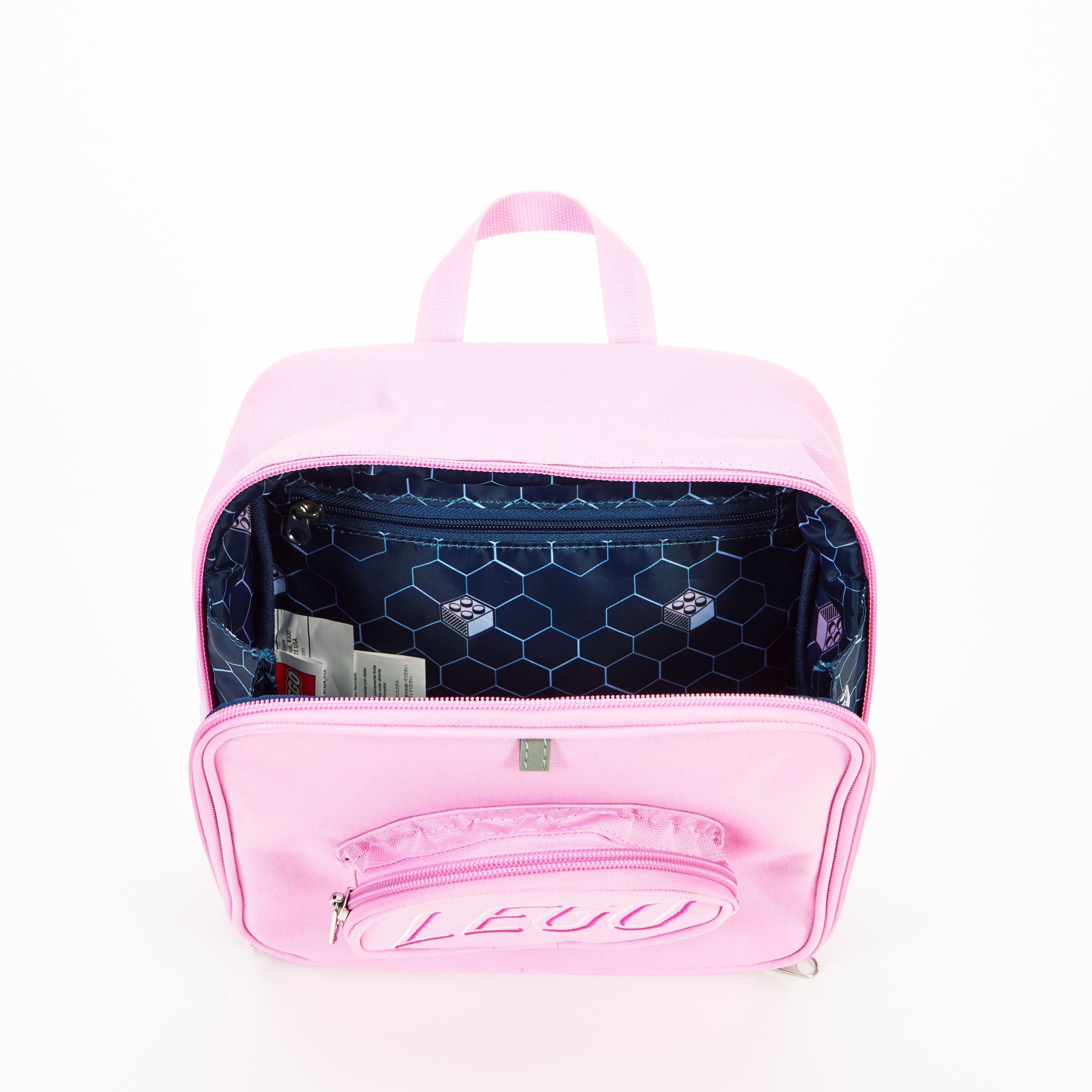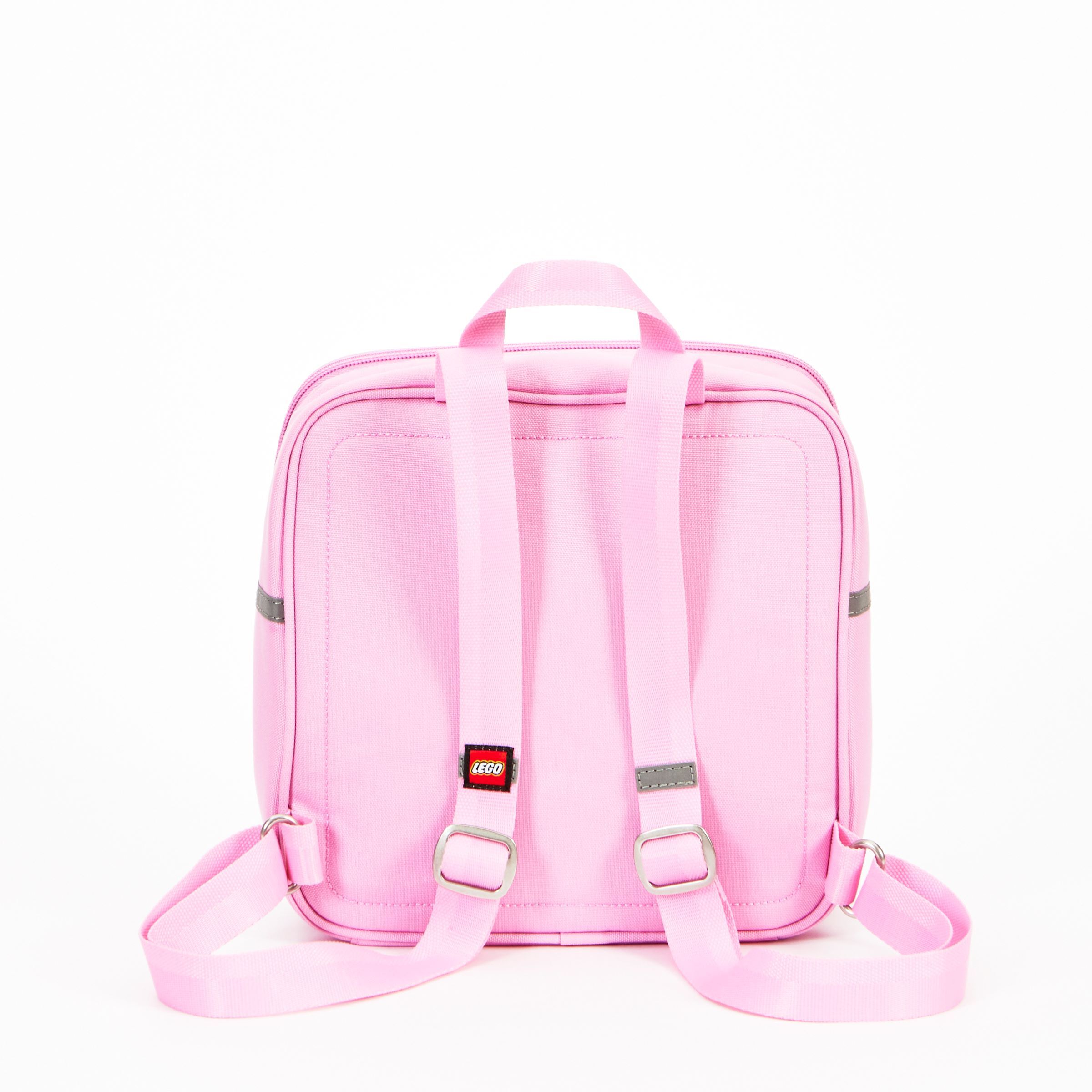 LEGO fans will look great on the go with this LEGO Brick Backpack! A gift idea for ages 3 and up, this compact bag is shaped like a 1×2 LEGO brick and comes in a light pink color. This awesome backpack is ideal for carrying kids’ essentials and features a double-zipped main compartment with an interior zipped pocket and padded pocket for tablets, plus a stud-shaped zipped pocket on the front. It has adjustable shoulder straps with 360-degree reflective details so kids can travel in comfort.”,”featuresText”:”LEGO fans will look great on the go with this LEGO Brick Backpack! A gift idea for ages 3 and up, this compact bag is shaped like a 1×2 LEGO brick and comes in a light pink color. This awesome backpack is ideal for carrying kids’ essentials and features a double-zipped main compartment with an interior zipped pocket and padded pocket for tablets, plus a stud-shaped zipped pocket on the front. It has adjustable shoulder straps with 360-degree reflective details so kids can travel in comfort.