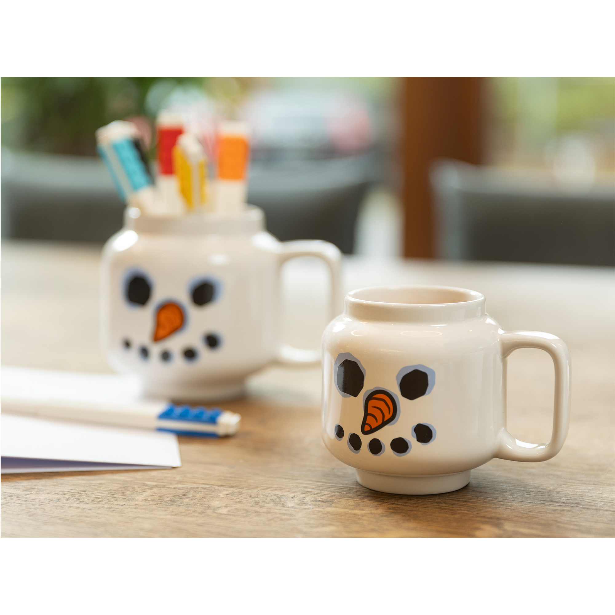 Enjoy drinks during the holiday season and beyond from this small LEGO Snowman Mug. Shaped like the iconic snowman minifigure’s head (plus a handle), this 8.5 oz. (255 mL) novelty ceramic mug is perfect for LEGO fans in need of refreshment duringa building session. A cool Christmas gift idea for kids ages 5 and up, the mug can also be used to stow LEGO bricks and other small desktop items.”,”featuresText”:”Enjoy drinks during the holiday season and beyond from this small LEGO Snowman Mug. Shaped like the iconic snowman minifigure’s head (plus a handle), this 8.5 oz. (255 mL) novelty ceramic mug is perfect for LEGO fans in need of refreshment duringa building session. A cool Christmas gift idea for kids ages 5 and up, the mug can also be used to stow LEGO bricks and other small desktop items.