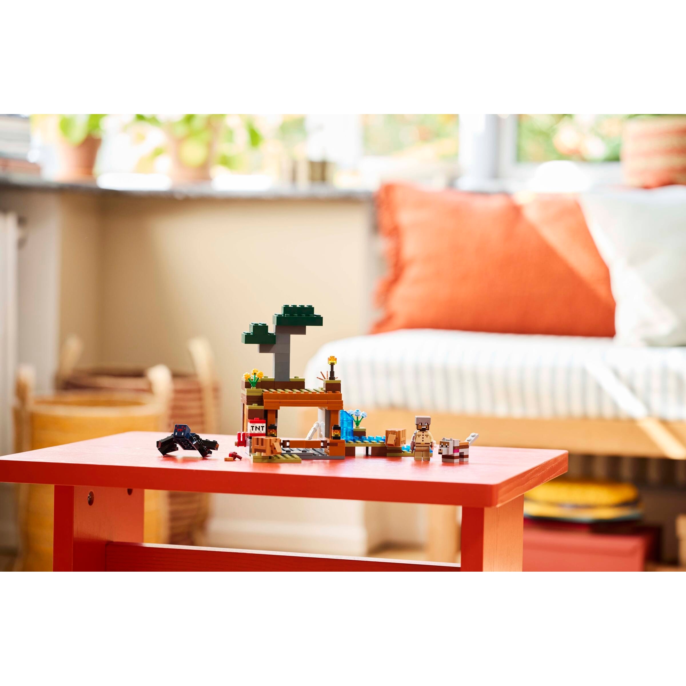 Set in the game’s savanna biome, the model features a mine with a lever-controlled TNT function that blasts away a piece of the terrain to reveal precious ore. There is a cave spider toy and a wolf, plus 2 armadillos, which provide the scutes used to craft wolf armor. At the side of the mine there is a small river and a lava fall. The set easily rearranges to inspire new adventures. For extra digital fun, the LEGO Builder app lets kids zoom in and rotate models in 3D using their device.