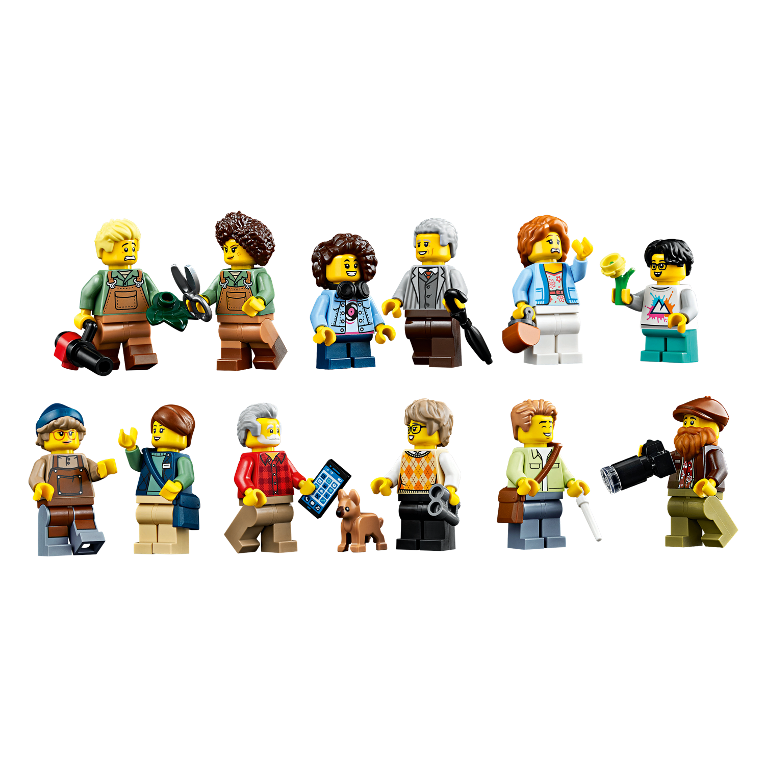 12 LEGO minifigures – Includes 4 members of staff (the manager, 2 gardeners and a barista) and various visitors, plus a dog, a squirrel, a bunny and 4 bird figures, plus a beetle element