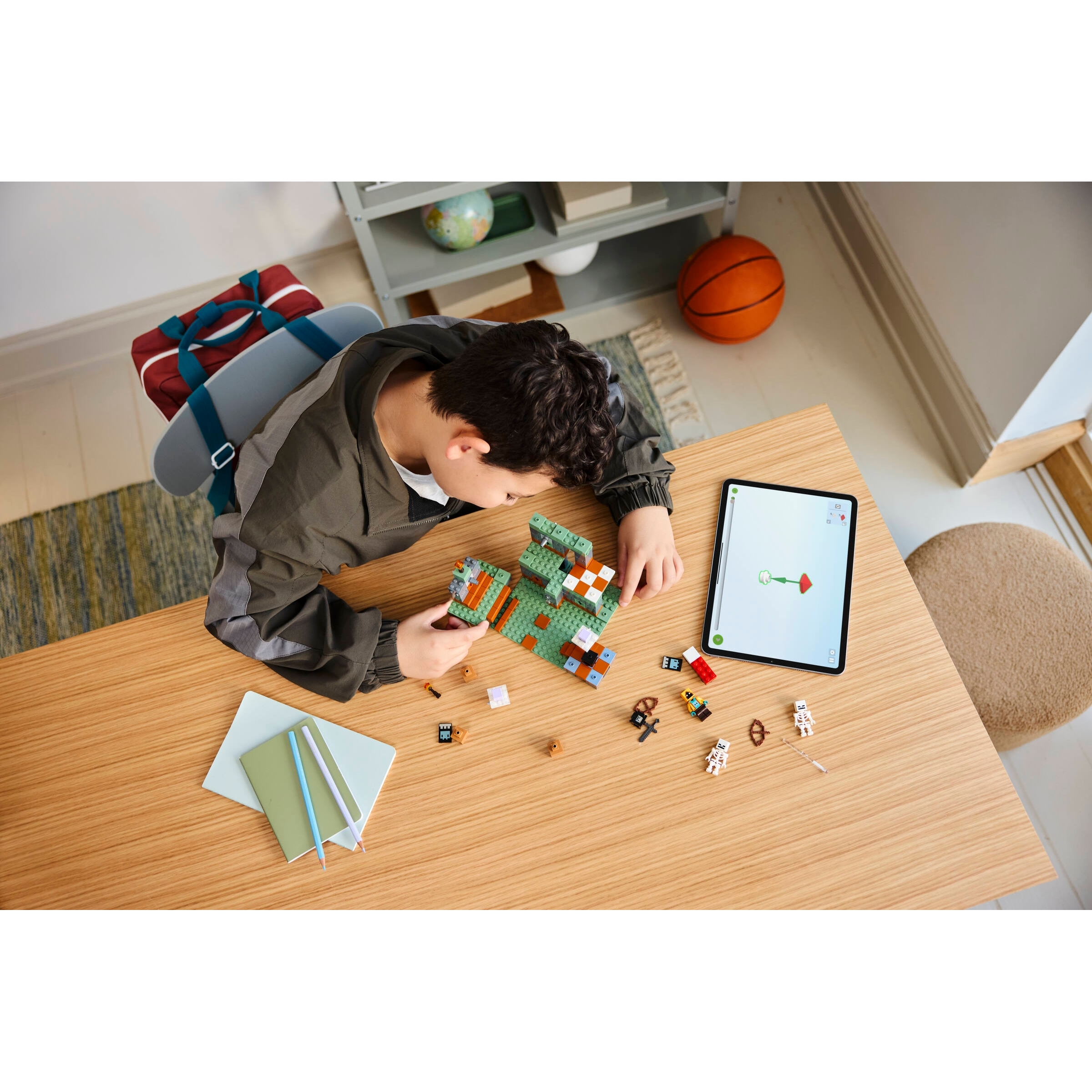 This creative building toy is set in the Minecraft trial chamber. It includes 2 skeleton figures, 2 breeze figures, a Shadow Hoodie minifigure and 2 spawners. There are 2 flick-fire missile launchers – 1 on each wall – and a spring-loaded missile with a trigger behind the rear wall. 3 pots, each hiding either an emerald or a diamond, contain the sought-after treasure. For more play possibilities, a room at the back of the set is equipped with a bed and table. For digital fun, the LEGO Builder app lets kids zoom in, rotate models in 3D and track their progress.