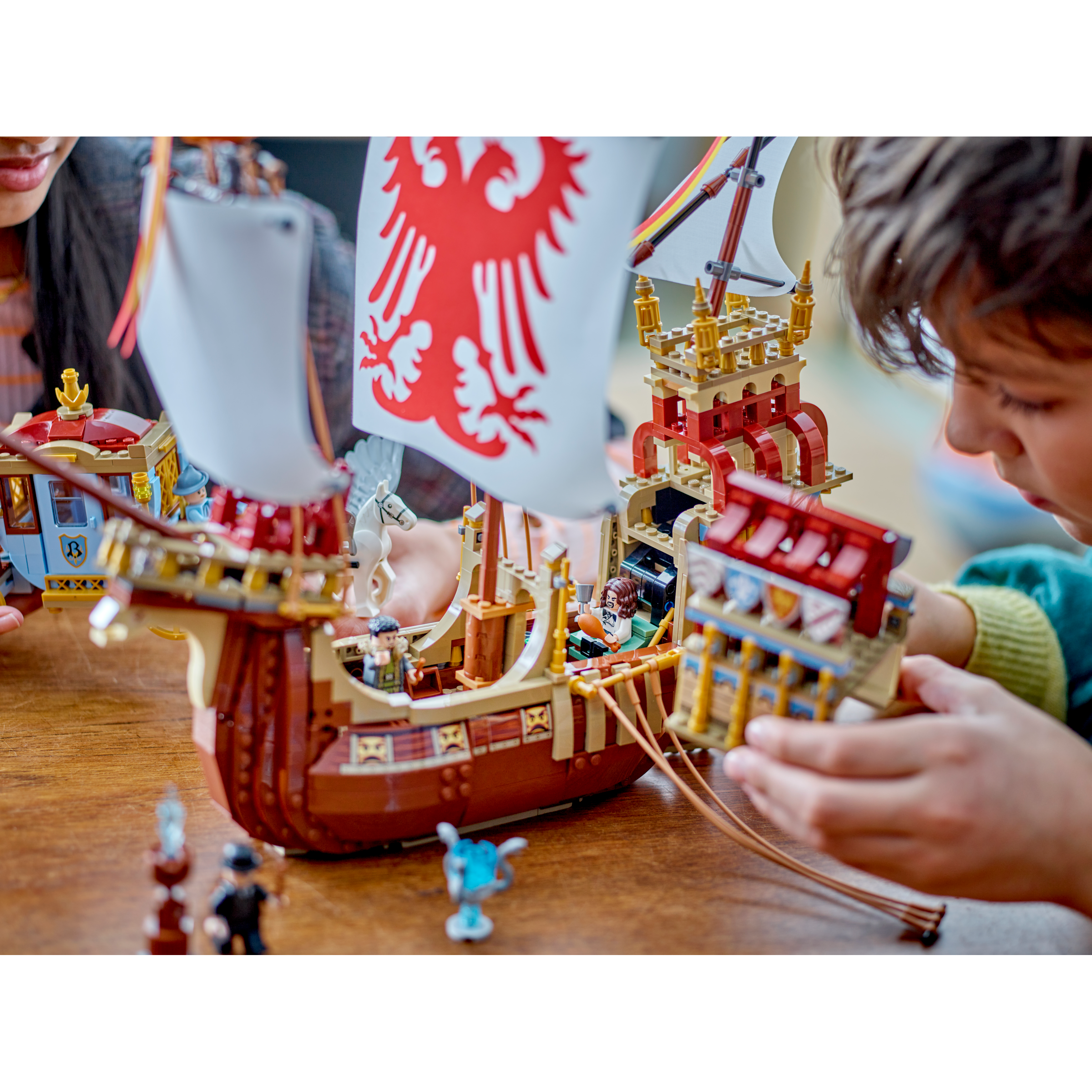 Recreate an iconic scene with this LEGO Harry Potter Triwizard Tournament: The Arrival (76440) ship playset for kids. A magical toy gift set for boys, girls and any Harry Potter fan aged 10+, it features detailed models of the Durmstrang Ship and Beauxbatons Carriage to play out the competitors’ arrivals at Hogwarts for the tournament. The ship has a living area and sleeping quarters below deck for minifigures. The ‘flying’ carriage is led by a beautiful Abraxan figure and has room inside for 2 minifigures with a trunk at the back.