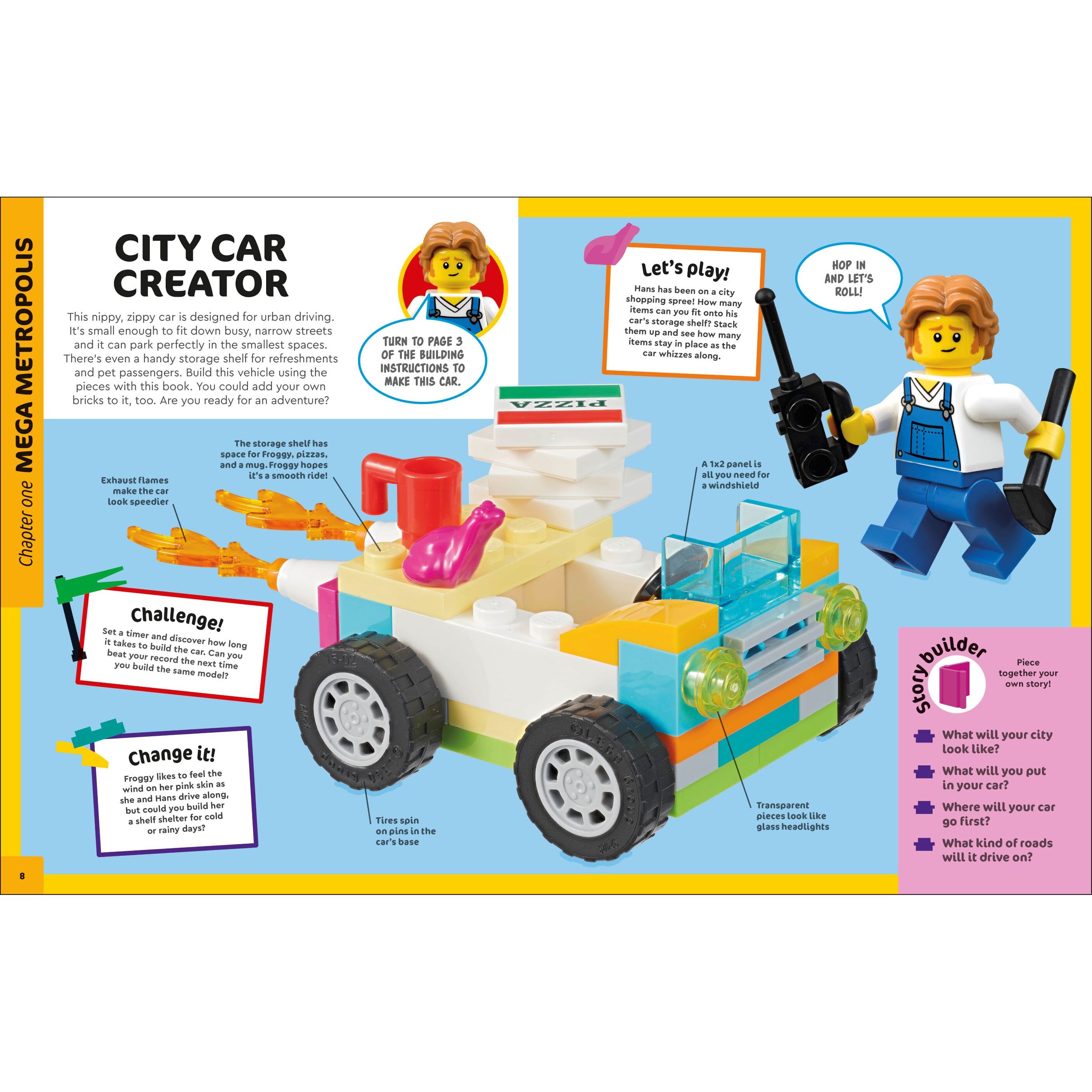 Inspire children to create their own brick-built adventures with the LEGO World Builder activity book. This 128-page, hardcover, illustrated book features inspiring stories and 150 ideas to build LEGO city, jungle, space, and underwater worlds. A cool anytime LEGO gift for kids, the book comes with 150 bricks to build a city car toy that can be rebuilt into a jungle car, a spacecraft or a submarine, plus a sorting tray for organizing, storing and transporting the bricks and models-in-progress.”,”featuresText”:”Inspire children to create their own brick-built adventures with the LEGO World Builder activity book. This 128-page, hardcover, illustrated book features inspiring stories and 150 ideas to build LEGO city, jungle, space, and underwater worlds. A cool anytime LEGO gift for kids, the book comes with 150 bricks to build a city car toy that can be rebuilt into a jungle car, a spacecraft or a submarine, plus a sorting tray for organizing, storing and transporting the bricks and models-in-progress.